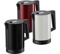 Das Gehäuse des Wasserkochers besteht aus einem Material, das eher selten bei Küchengeräten Verwendung findet: hochwertiges Acrylglas. Die Wände wurden zudem wärmeisoliert, was dem Kochvorgang zugute kommt, und zudem einen Schwachpunkt vieler Konkurrenten umgeht, die an der Außenseite teilweise empfindlich heiß werden – auf dem Prüfstand wurden schon Werte im Bereich zwischen 80 und 90 Grad gemessen. Äußerst praktisch wiederum ist die Möglichkeit, eine gewünschte Temperatur vorab einstellen zu können. Zur Auswahl stehen dabei 70°, 80°, 95° und 100°. Der jeweilige Wert wird mittels LEDs angezeigt. Das Heizelelement ist verborgen – wie dies mittlerweile bei den meisten Modellen, mit Ausnahme im Low-Budget-Bereich, der Fall ist. Überhitzung-s und Trockengehschutz, eine beidseitige Wasserstandsanzeige sowie ein verriegelbarer Sicherheitsdeckel und eine Kabelaufwicklung runden die Ausstattung ab.