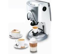 „Für teure Cafissimo-Kapseln (viele Sorten, auch Espresso). Macht Latte macchiato entweder mit Milchpulver aus der Tüte oder mit Milchschaum aus der Dampfdüse. Ist langsam, macht viel Müll. Kaffee nur mittelmäßig.“