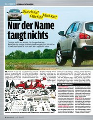 „Bis auf den Ärger mit den Antriebswellen ist Nissans Bestseller problemlos, Langzeit-Fahrer sollten sich aber rechtzeitig um den Unterbodenschutz kümmern. Eines ist der Qashqai jedoch nicht: ein Schnäppchen. Denn der gute Ruf hat stabile Gebrauchtpreise zur Folge.“