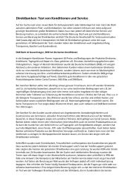 Auf der Suche nach einer neuen Bank für Zahlungsverkehr oder Geldanlage hat man meist die Wahl zwischen zahlreichen Filial- und Direktbanken. Vor allem Letztere erfreuen sich meist aufgrund günstiger Konditionen großer Beliebtheit. Dabei muss man jedoch oft Abstriche bei Service und Beratung machen, so zumindest die vorherrschende Meinung. Doch wie gut sind Konditionen, Service und Beratung bei Direktbanken wirklich? Die Deutsche Gesellschaft für Verbraucherstudien mbH ... hat in Kooperation mit N24 14 Direktbanken genauer unter die Lupe genommen. Im Mittelpunkt der Tests standen neben den Konditionen auch Angebotsumfang, Transparenz, Komfort und Kundendienst. ...