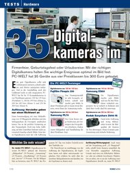 Im Test waren 35 Digitalkameras unterschiedlicher Preisklassen. Testkriterien waren Bildqualität, Ausstattung sowie Handhabung und Service. Zudem gab es für zwei Kameras je eine Aufwertung aufgrund eines zweiten Akkus im Lieferumfang und einer direkt anwählbaren Belichtungsmessung. Ebenso gab es für zwei Kameras je eine Abwertung aufgrund einer fehlenden, direkten Belichtungskorrektur und einer etwas trägen Menü-Navigation.- 5 Digitalkameras von 100 bis 139 Euro