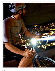 „Ausleuchtung und Ausdauer der Speedster von Sigma liegen im Mittelfeld, gut gefällt die Ladestandsanzeige und die schnell zu befestigende, leider unflexible Halterung, zudem recht leicht.“