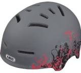 „Von Optik und Design eher Skater- als Radhelm. Kopfband mit Drehknopf verstellbar. Mangelnde Belüftung. Die Trageriemen stehen durch die Bauweise seitlich weit ab, die Riemenfixierer verschieben sich leicht.“