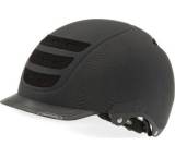 „Von der Optik eher Reiterhelm als Radhelm. Sehr guter Rasterverschluss. Kopfband mit Drehknopf verstellbar. Druckstellen an der Stirn werden durch Padform verstärkt. Die hinteren Trageriemen liegen über den Ohren an. Keine Reflektoren.“