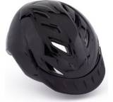 „Cityhelm mit Kopfbandverstellung. Sehr gute Erkennbarkeit bei Dunkelheit durch eingenähte Reflektoren in den Haltebändern, Reflektoren am Helm und LED-Licht hinten am Helm. Abwertung wegen mangelhafter Stoßdämpfung.“