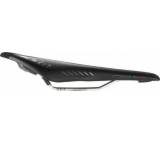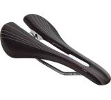 „Aufgrund der dicken Polsterung des Fly RSR Gel sinken die Sitzknochen vergleichsweise tief ein, das ist sehr komfortabel. Dank tiefer und langer Aussparung wird der Dammbereich (trotzdem) entlastet. Eine Schale und ein Gestell aus Carbon drücken den Sattel unter 300 Gramm. Nettes Gimmick: Gekletteter Wind- und Spritzschutz unter der Schale.“