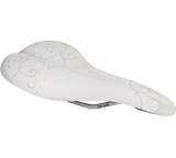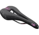 „Sportlicher Look, feminine Applikationen, perforierte Satteldecke. Eine sportive Polsterung und die großzügige Aussparung in der Sattelmitte sorgen für Komfort und Entlastung. Eine Sattelschale aus Carbon minimiert das Gewicht und macht den Sattel auch für sportlich ambitionierte Damen sehr interessant.“