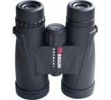 „Wuchtigste Optik im Test, Besonderheit: keine manuelle Fokussierung, Fernbereich steht ‚automatisch‘ scharf, die Vergrößerung ist beeindruckend, Lichtstärke bis zur Dunkelheit auch, ab einem Punkt fallen Kontrast und Farbechtheit abrupt ab, die Sicht ist weiter ausreichend. Trotz Gewicht liegt es gut in der Hand, Sichtfeld sehr weit, hat nur im Randbereich der Augen minimale Schatten. ...“