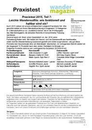 ... Diesmal legen wir Ihnen einen Spezialtest vor, der 2016 seine Fortsetzung finden wird. Wir haben ein Herren- und ein Damenoutfit aus funktioneller, relativ leichter Wanderkleidung zusammengestellt und wollen ausprobieren, wie gut diese Produkte den Dauereinsatz über ein Wanderjahr überstehen. ...