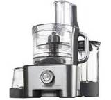 „Die kompakte Küchenmaschine erkennt die Aufsätze und passt ihre Arbeitsgeschwindigkeit von selbst an. Der Motor hat 1200 Watt Leistung, der Arbeitsbehälter fasst 4 Liter.“