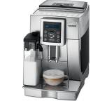 „Die neue Brühgruppe des Kaffeevollautomaten lässt sich komplett entnehmen und so leicht reinigen. Selbst Cappuccino liefert der Automat auf nur einen Knopfdruck. Der Wassertank fasst 1,8 Liter.“