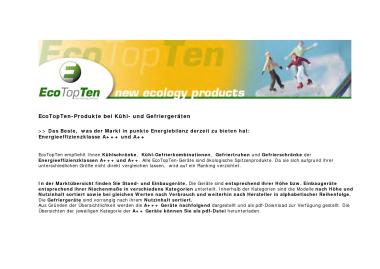 Im Bereich „Kühlen & Gefrieren“ liefert EcoTopTen eine Marktübersicht zu insgesamt 51 Kühl- und Gefriergeräten. Darunter befinden sich 34 Standgeräte, die in Kühlschränke, Kühl- und Gefrierkombinationen sowie Gefrierschränke aufgeteilt wurden. Außerdem sind die Standgeräte in entsprechende Höhen-Kategorien aufgegliedert. Zusätzlich wurden für jede Kategorie typische Produkte, die am Markt erhältlich sind, vorgestellt. Zu den EcoTopTen-Kriterien zählten unter anderem hohe Qualität, angemessener und bezahlbarer Preis sowie Unterstützung eines umweltfreundlichen und kostensparenden Gebrauchs. Ebenfalls wurden Angaben zum Nutzinhalt, zu den jährlichen Gesamtkosten und zu den weiteren Ausstattungsmerkmalen aufgeführt. Die Modelle sind innerhalb der Marktübersicht nach ihrem Nutzinhalt sortiert. Einige Produkte sind in unterschiedlichen Farbausführungen erhältlich. Dies schlägt sich in den jährlichen Gesamtkosten nieder und wird im Produktfazit durch die Mehrfachdarstellung der Werte abgebildet. Hinweis: EcoTopTen bewertet Produkte auf Basis von Herstellerangaben und eigenen Recherchen. Für jede Produktgruppe gelten strenge EcoTopTen-Mindestkriterien, die die Produkte erfüllen müssen, um empfohlen zu werden.- 1 Kühlschrank (Standgerät A+++ bis 85 cm Höhe)
