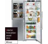 „Der König der Kühlschranklösungen ist das Side-by-Side-Modell Liebherr SBSes7165. In seinen über 600 Litern Nutzraum gibt es neben einem 119-Liter-Gefrierfach, ein 111-Liter-BioFresh-Abteil und einen 128 Liter bietenden Weinschrank. Ein IceMaker mit Wasseranschluss komplettiert den Kühlungs-Luxus. Die ganze Vielfalt des Kühlens kann einfach über ein Touch-Panel eingestellt und kontrolliert werden.“
