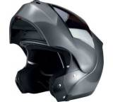 „Auffällig ist beim N 103 die Kinnbügelmechanik. Der Bügel wird in aufgeklapptem Zustand elliptisch an die Schale gezogen. Funktioniert super, lädt aber dazu ein, mit offenem Kinnteil zu fahren. Das Visier ist für Pinlock-Folie vorbereitet. Das integrierte Sonnenvisier deckt fast das gesamte Sichtfeld ab. ...“