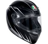 „... Beschlagfreies Visier mit hervorragendem Sichtfeld und smoother Mechanik. Nur drei Rastpunkte, die aber praxisnah. Trotz Tourenausrichtung mächtig zugig und mächtig laut. Da fällt die dezente Belüftung kaum auf. Nicht ganz leicht. ... Ein verkappter Sporthelm im Tourenanzug. Flauschig, aber knackig im Sitz, super Visier, aber ordentlich Action in der Kajüte. Innovatives Sicherheitssystem.“
