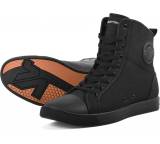 Laufen ist sicher nicht erste Priorität, wenn wir uns Motorradtreter aussuchen. Doch gepanzerte Yeti-Boots machen sich im Alltag zwischen Haustür, Büro und Bäckerei ausgesprochen schlecht. Und so schnallten wir uns probehalber leichtes bis mittelschweres und dazu sehr modisches Schuhwerk unter die Sohlen und fuhren, liefen und kickten.