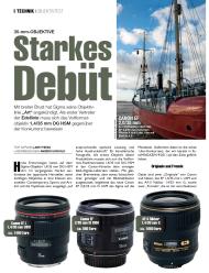 „... für diese Lichtstärke typische, deutliche Offenblendeinschränkung. Für beste Ergebnisse (gut bis sehr gut) sollte man um zwei Stufen abblenden. ... Gut bis sehr gut in Kunststoffbauweise mit Metallbajonett und Gummidichtlippe gefertigt. Fokussierring weich laufend und gut übersetzt. Nahgrenze sehr gut. ...“