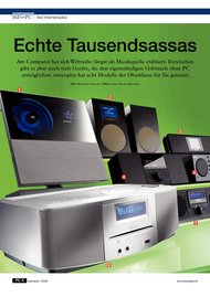 „... spielt Musik von PC oder NAS und arbeitet darüber hinaus auch mit der hauseigenen Server-Anlage Gigajuke zusammen. Hervorzuheben ist das Holzgehäuse, der Klang wirkt recht ausgewogen.“