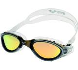 „Für ambitionierte Athleten. Die ‚Predator Flex‘ ist sehr biegsam, sie hat Flexpunkte neben dem Nasensteg und am Übergang zum Kopfband. Die Brille lässt sich gut verstellen, die grauen Scheiben gingen auch beim Indoor-Schwimmen in Ordnung. Mit Polarisationsfilter gegen Wasserspiegelungen erhältlich.“