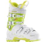 „... Sein Hauptleistungsmerkmal ist das Advant-Edge-Design mit direkter Kraftübertragung, hervorragender Balance und Kontrolle in Kurven sowie optimierter Einstellbarkeit, Heckunterstützung und Energieübertragung für besseres Skifahren bei geringerer Anstrengung. Der Schuh wartet darüber hinaus mit einer frauenspezifischen Wadenanpassung und einem von komfortabel bis athletisch einstellbaren Flex auf.“