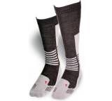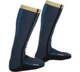 „Aus dem Fahrradbereich kommt diese wasserdichte Socke von Gore-Tex. Über einen Funktionsstrumpf gezogen, bleiben die Füße angenehm warm und trocken. Durch den Einsatz von Elasthan ist die Socke etwas elastisch und lässt sich leicht anziehen.“