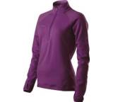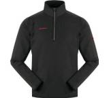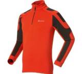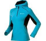 „... Der tiefer heruntergezogene Rücken, ein hoher Stehkragen mit abgedecktem Reißverschluss, Daumendurchgriffe an den Ärmeln und die Wärmeleistung empfehlen den Skipulli für sehr kalte und windige Tage, besonders auch für Tourengeher und Freerider.“