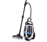 „... ähnelt einem herkömmlichen Handstaubsauger. Man kann aber das in der Mitte zwischen Bodendüse und Schiebegriff eingebaute Handgerät zum Saugen von Polstern und Möbeln herausnehmen. ... Die Reinigung der Elektrobürsten ist aufwendig, ebenso der Filterwechsel und das unhygienische Entleeren der Staubbox. ...“