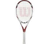 „... fühlt sich noch leichter an, als er ist. Dadurch ist das Handling besonders angenehm. Das Modell unterstützt das ruhige Topspinspiel von der Grundlinie und ist auf gemäßigtes Tempo ausgelegt - bei schnellen Rallys flattert der Rahmen. Abzüge gibt es auch beim Touch. Zielgruppe: sportliche Kids, die von einem Junioren- auf einen normalen Erwachsenenschläger umsteigen wollen. Vorteil: einer der günstigsten Rahmen ...“