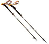 „Schnell und leicht zu justierender Stock. Mit Kappe aus Rubber-Grip an der Spitze, darunter wahlweise eine Karbit-Spitze, sorgen für guten Halt im Gelände. Hochwertige Verarbeitung, auch die Fixierschnüre sind ummantelt. Griff sorgt mit seinen Einkerbungen für guten Halt.“