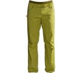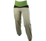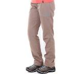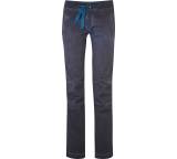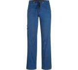 „... Obwohl nicht besonders weit geschnitten, behindert der dünne Stoffe beim Klettern in keinster Weise und ist auch an wärmeren Tagen oder Orten angenehm zu tragen. Das Damenmodell kommt mit breitem Umschlagbund ... Mit elastischen Kordelzügen lassen sich die Beinabschlüsse regulieren, eine kleine Chalkbag-Schlaufe und tiefe Taschen hinten sowie etwas flachere Taschen vorne runden die Ausstattung ab. ...“