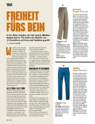 „... Obwohl der Elastan-Anteil nur zwei Prozent beträgt, dehnt sich der Stoff der Frea ganz ausgezeichnet. Die mittelweit geschnittene ... Hose schränkt damit die Beweglichkeit ihrer Träger nicht im mindesten ein – prima. Auch die Ausstattung gefällt: gute Taschen, hinten auch verschließbar, Gürtelschlaufen, falls der elastische Bund zu wenig Halt gibt, regulierbare Beinabschlüsse ...“