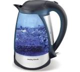 „... Benötigt für das Erhitzen von 1 l Wasser 3:44 min (maximale Leistung 2050 Watt). Außentemperatur der Kanne im Betrieb 70 Grad C. Innenraum wird blau beleuchtet. Trotz guter Handhabung schlechtestes Gerät im Test: Selbst nach mehr als 10 Durchgängen hatte das erhitzte Wasser einen deutlichen Fremdgeschmack und die Kanne riecht stark nach Kunststoff.“