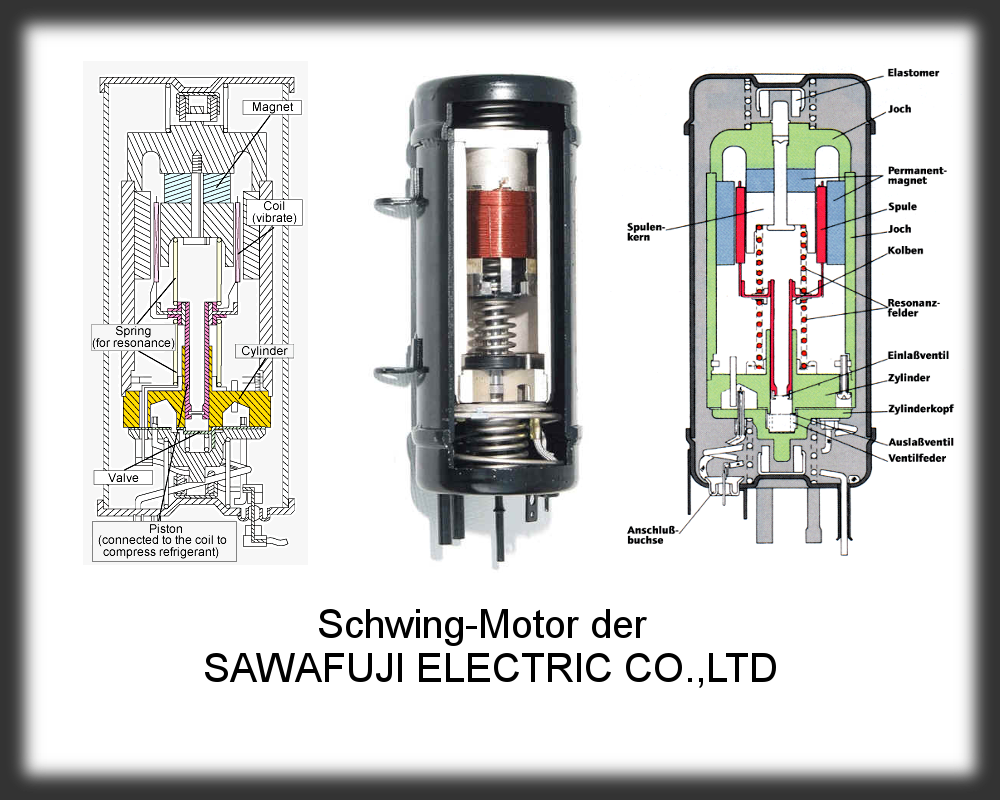 Besondere Kompressor-Konstruktion mit Schwingkolben-Motor