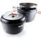 yourGEAR Ranger V Topf Pfannen Set für 4-5 Mann 7-teiliges Camping Kochset aus langlebigem, hart eloxiertem Aluminium. Ideal für Familienausflüge, leicht und kompakt mit einklappbaren Griffen und Transportbeutel.