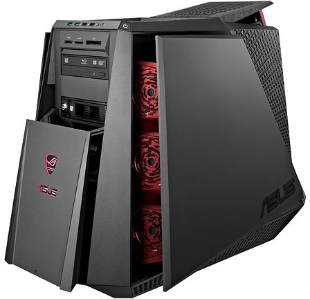 Der taiwanesische Computerhersteller hat in den letzten Jahren vor allem das Segment der spieleaffinen PC-Nutzer angepeilt. Unter dem Sub-Brand Republic of Gamers (ROG) erscheinen Notebooks, PCs und seit einiger Zeit auch Eingabegeräte. Während der allgemeine Trend im PC-Bereich derzeit in Richtung leiser und energiesparender Modelle geht, schlägt Asus mit der Gaming-Reihe Tytan eine andere Richtung ein. Hier trifft sehr leistungsfähige Hardware auf extravagante Kühlsysteme mit Wasser. Fest integriert ist dabei die Möglichkeit, den Prozessor im laufenden Betrieb in drei Stufen zu übertakten. Wird dieser Modus aktiviert, klappen Abdeckungen an der Seite und im Deckel des Gehäuses aus und offenbaren zusätzliche Lüfter. Gemessen an den verbauten Komponenten sind die Systeme recht teuer und am besten mit den Alienware-Geräten der Firma Dell zu vergleichen.In die gleiche Kerbe schlägt dabei auch das G10, welches auf der Technikmesse Computex 2013 vorgestellt wurde. Ausgestattet mit Intels neuer Haswell-Architektur und Nvidia Grafikkarten findet sich noch eine Besonderheit in der Serie. An der Front ist nämlich neben den üblichen USB-Anschlüssen und einem DVD-Laufwerk auch ein Akkupack integriert. Dieses lässt sich herausnehmen und dient dann unterwegs als Ladegerät für das Smartphone und Tablet. Auch kann es als kurzfristige Stromüberbrückung fungieren, sollte einmal der Strom ausfallen. Laut Hersteller beträgt das Zeitfenster dabei 25 Sekunden.