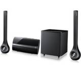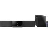 2.1-Systeme. Hier steht dem Sub ein schlankes Kombigehäuse zur Seite, das die zwei Speaker enthält. Montiert wird die Bar direkt unter dem Fernseher - das sieht gut aus und sorgt für mehr Ordnung im Wohnzimmer.
