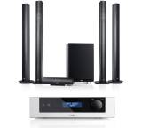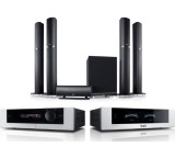 Unterscheiden lassen sich die Sets grundsätzlich danach, ob als Basis ein reiner Receiver oder ein Exemplar mit Blu-ray-Laufwerk fungiert. Letzteres ist dabei in aller Regel 3D-fähig, die Konnektivität wiederum fällt in beiden Fällen für gewöhnlich relativ gut aus, zumindest bei den aktuellen Angeboten. Zu mehreren analogen und digitalen Audioeingängen gesellen sich etwa ein HDMI-Ausgang mit Audiorückkanal sowie - die genaue Anzahl hängt letztlich vom Preis ab - einige HDMI-Eingänge, die den Anschluss mehrerer Bildquellen erlauben (PC, Notebook, Spielkonsole etc.). Praktisch dabei: Dank "Passthrough"-Unterstützung wird der Ton abgespielt und das Bild via HDMI-Ausgang zum TV geleitet. Ans DLNA- bzw. Heimnetz wiederum lassen sich die Sets ebenfalls anschließen, teilweise allerdings nur ganz klassisch per LAN-Buchse. Das sorgt für Kabelsalat und schränkt die Platzwahl ein.