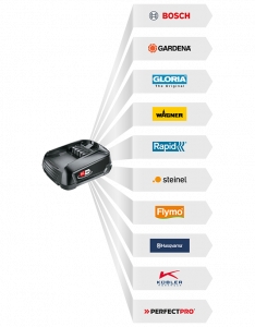 Im Juli 2020 stellte Bosch die neue „Power for All Alliance“ bzw. „Power for All“ (kurz „P4A“) vor: eine markenübergreifende Kooperation für ein 18-Volt-Lithium-Ionen-Akkusystem, die bereits mehrere Unternehmen aus verschiedenen Anwendungs- und Lebensbereichen vereint. Das heißt, dass Sie Garten- und Haushaltsgeräte von Bosch Power Tools und Bosch Home Appliances sowie eine Vielzahl an Produkten von Gardena, Gloria, Wagner und Co. mit ein und demselben 18-Volt-Akku von Bosch betreiben können. Inzwischen sind es 11 Marken und 100 Geräte, die von der übergreifenden Akkuplattform profitieren.