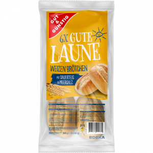 Edeka spielt auch bei den konventionellen Aufbackbrötchen ganz vorne mit: Die Gute Laune Weizenbrötchen sind nicht nur Gut & Günstig, sondern auch frei von Mängeln. (Bildquelle: edeka.de)