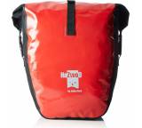 Stärken: ordentliche Verarbeitungsqualität; leicht bedienbares Befestigungssystem; hoher Nässeschutz durch zusätzlichen Klappdeckel und verschweißte Nähte; Verstärkung an der Unterseite.