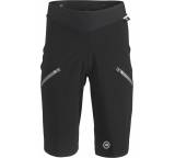„Robuste, elastische AM-/Enduro-Shorts mit wasserabweisender Imprägnierung und langem Bein, das über viele Protektoren passt. Die Einschubtaschen bieten wenig Stauraum. Zwei Belüftungs-RVs gegen Hitzestau. Gesäßbereich verstärkt.“