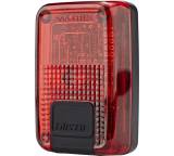 „Die einzelne LED wirkt durch das halbtransparente Gehäuse viel größer, der Schein ist flächig und geht weit über die 90° um das Gehäuse herum. Trotz der langen Leuchtdauer ist das Gewicht gering. Die Bremslichtfunktion ist hervorragend eingestellt, die Leuchte kalibriert sich bei jedem Einschalten neu, das ‚Aufblenden‘ könnte für den Stadtverkehr ein Mü heller sein. Top Halterung.“