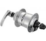 Nabendynamos sitzen in einer speziellen Vorderradnabe und erzeugen Energie, indem sie der Drehung des Laufrades Widerstand entgegen setzen. Der Dynamo verbraucht also mechanische Leistung und verwandelt diese in Strom. Vorteilhaft daran sind – zumindest im gehobenen Preissegment – mehrere Aspekte. Das System ist zuverlässig, wartungsarm und kaum anfällig für Nässe und Schmutz. Darüber hinaus arbeitet es leise und verglichen mit Seitenläufer- und Felgendynamos ist der Wirkungsgrad in aller Regel höher. Weniger schön ist sind der meist stattliche Preis, das höhere Gewicht sowie die Tatsache, dass sich das Laufrad bei deaktiviertem Licht nicht völlig frei bewegt. Und: Nur Hobbybastler oder Fahrradmechaniker können einen defekten Nabendynamo reparieren bzw. austauschen.