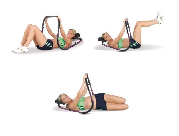 Deutlich bezahlbarer und zudem leicht auf- und abzubauen, das heißt, zu verstauen sind die sogenannten Rollräder/Rollbügel oder auch Bodentrainer. Durch ihre u-förmig gebogene (Stahl-) Rohrkonstruktion unterstützen und stabilisieren sie die natürliche Aufrollbewegung des Körpers. Sie sind daher ideal für Einsteiger, weil sie dabei helfen, Übungsfehler zu vermeiden. Meistens mit Polstern ausgestattet, schonen sie außerdem den sensiblen Nackenbereich sowie die Bandscheibe, beugen also Rückenproblemen vor. Einige Modelle besitzen zudem einen Mini-Trainingscomputer, der die Anzahl der Übungen zählt sowie Schätzwerte über den Energieverbrauch liefert – für ein normales Training ist dies jedoch ein eher überflüssiges Feature. Günstige Boden-/Rollentrainer sind bereits ab 30 EUR erhältlich.