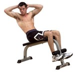 Auf einer sogenannten Bauchbank werden die Füße in eine Vorrichtung eingehakt und damit quasi fixiert, die Übungen entsprechen den üblichen Crunches und Sit-ups. Da in dieser Position der Einsatz der Hüftbeugemuskulatur verringert wird, wirkt sich das Training entsprechend stärker auf die Bauchmuskeln aus. Die Bank sollte verstellbare Auflagen- und Liegepolster haben, besonders groß gewachsene Personen finden nicht unbedingt ein für sie passendes Modell. Bei einigen hochwertigen Geräten lässt sich sogar die Liegefläche in mehreren Stufen neigen. Dies erhöht die Effektivität des Trainings, die entsprechenden Modelle eignen sich daher sowohl für Einsteiger als auch für Fortgeschrittene. Ferner können flexibel verstellbare Bänke zusätzlich für das Training anderer Muskelgruppen, wie zum Beispiel des Bizeps, verwendet werden. Allgemein gilt eine Bauchbank als das beste Gerät für ein Bauchmuskeltraining, und zwar für alle Fitnesslevels. Sie beanspruchen jedoch relativ viel Platz für sich und sind mit rund 100 EUR oder sogar mehr auch die teuerste Variante.