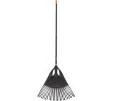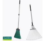 Die typischen Modelle der Rechen, Fächerbesen beziehungsweise Harken kombinieren den stabilen Holzgriff mit einem Werkzeug aus Metall oder Stahl. Es gibt Rechen und Fächerbesen in kleiner Ausführung und mit langem Stiel. Kleine Blumenrechen mit kurzem Griff etwa unterstützen beim Unkrautjäten oder beim oberflächlichen Auflockern der Erde. Bei guten Fächerbesen lässt sich der fächerartige Aufsatz mit einem Handgriff schmaler oder breiter einstellen. Generell variiert die Arbeitsbreite von Rechen bis zu 40 Zentimetern. Andere haben einen Teleskopauszug, sodass man den Stiel der eigenen Körpergröße anpassen kann.