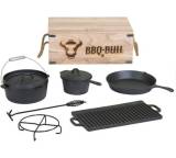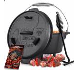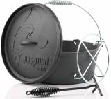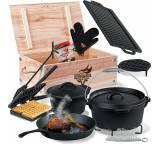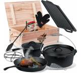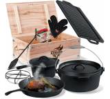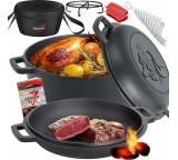 In seiner ursprünglichen Version – der Dutch Oven (DO) stammt aus dem „Wilden Westen“ der USA und diente unter anderem den Siedlern traditionellerweise als Kochtopf fürs Lagerfeuer – besitzt ein DO außerdem kleine Füße, damit er direkt über die Kohlen gestellt werden kann. Einige können Sie auch an einem Haken, etwa in einem Schwenkgrill, aufhängen. Zusammen mit der Oberhitze lässt er sich sehr vielfältig einsetzen, etwa für Schmorgerichte, Eintöpfe oder ähnliche Gerichte, die längere Garzeiten in Anspruch nehmen. Aber eben auch, wie eingangs erwähnt, zum Backen, zum Beispiel von Brot, süßen Nachspeisen oder sogar ganzen Kuchen. Das Kochgeschirr wird daher unter Grillern immer beliebter, eröffnet es doch ganz neue Experimentierfelder.Gusseisen – ein spezielles Material