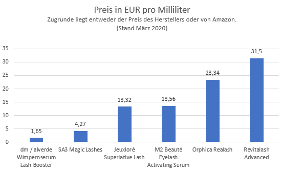 Preisunterschiede am Beispiel ausgewählter Wimpernseren unterschiedlicher Hersteller. (Bildquelle: testberichte.de)