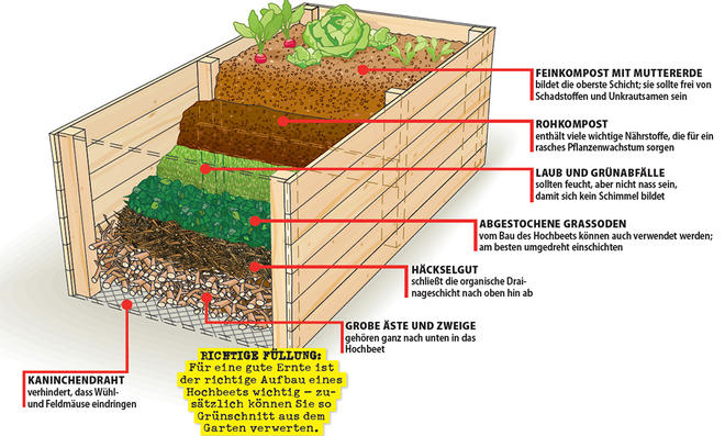 Wenn Sie einen Garten und Kompost haben, dann ist folgende Schichtung empfehlenswert:
