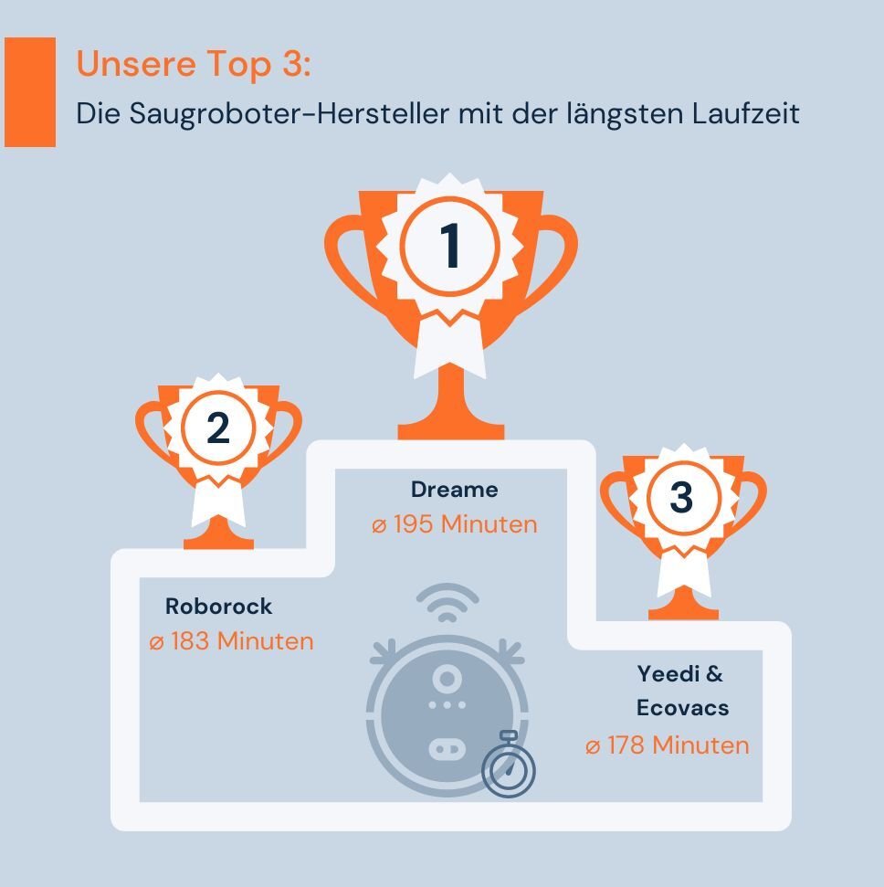 Während die durchschnittliche Akku-Laufzeit von Saugrobotern lange bei maximal 120 Minuten lag, schaffen die aktuellen Modelle häufig Laufzeiten von mehr als 180 Minuten. Damit eignen sie sich auch für immer größere Wohnflächen und lassen sich auch bequemer auf mehreren Etagen ohne Aufladen verwenden. Viele Hersteller handeln mittlerweile auch im Sinne der Nachhaltigkeit und bieten die Möglichkeit, den Akku zu wechseln – praktisch, wenn dieser in die Jahre gekommen oder gar kaputt geht. Befindet sich ein weiterer Akku im Lieferumfang, kann das die Laufzeit verlängern und so für mehr Flexibilität sorgen.